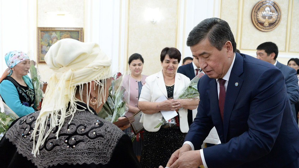 Президент көп балалуу айымдарды, ийгиликтүү жаштардын апаларын сыйлады (сүрөт)