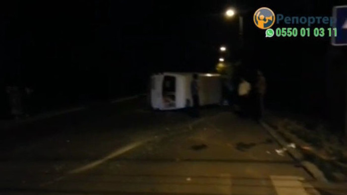 Бишкекте жол кырсыктан кийин кичи автобус оодарылып кетти. Жабыркагандар бар (видео)