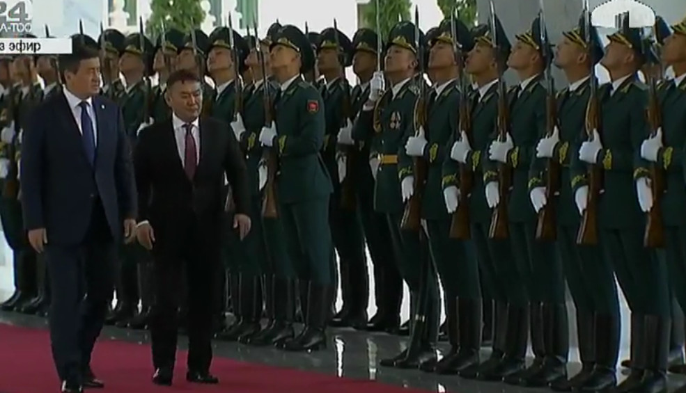 «Салам, аскер!»: Моңгол президенти ардактуу кароол менен кыргызча учурашты