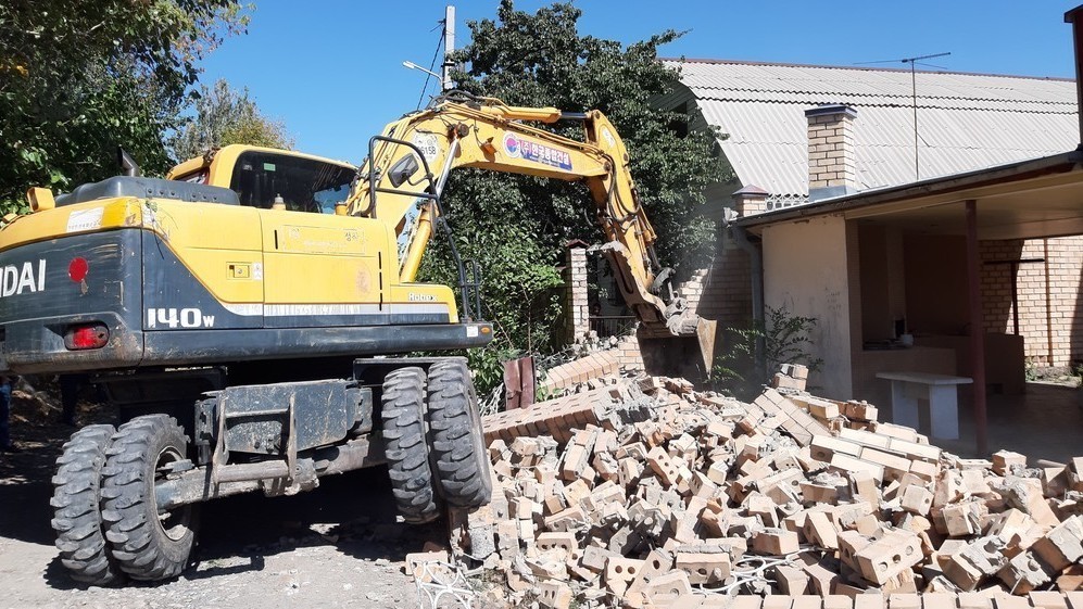 Сүрөт, видео: Бишкекте жол куруу иштерине тоскоолдук жараткан дубалды бузушту