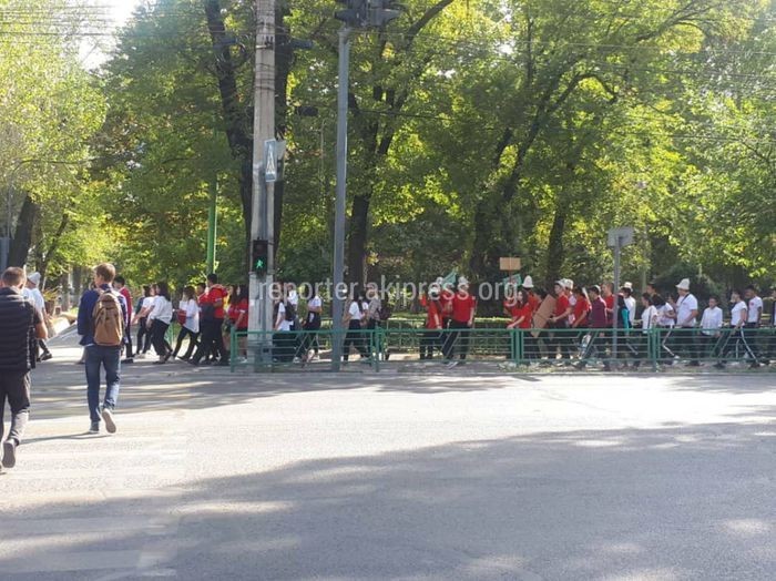 Сүрөт — Борбордук көчөлөрдө жөө жүрүшкө чыккан жаштар