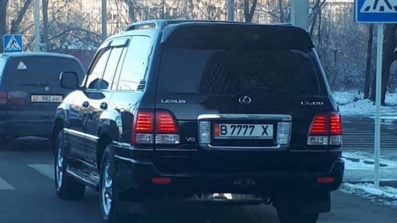 Бишкекте айнеги караңгылатылган «Лексус» токтоп турат. Айдоочуга 11 миң сом айып салынган