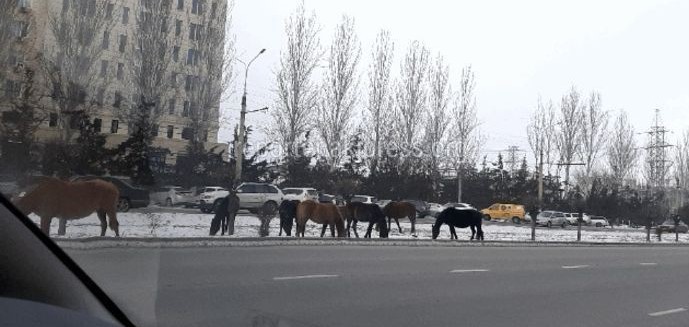 Бишкекте «сейилдеген» жылкылар (сүрөт)