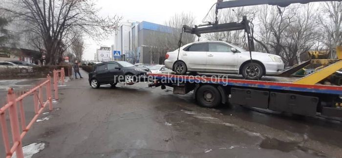 Жеңиш аянтында токтотулган унааларды жүктөп кетишти. Сүрөт