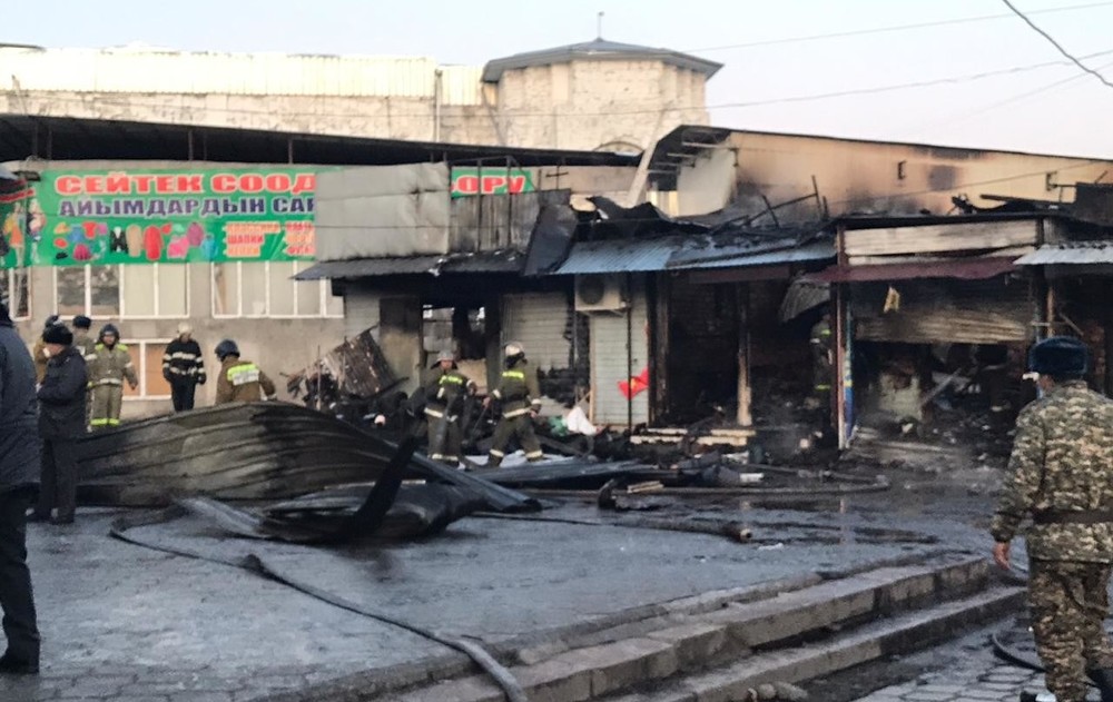 Таң эрте «Ош» базарынын аймагында болгон өрттөн сүрөт, видео