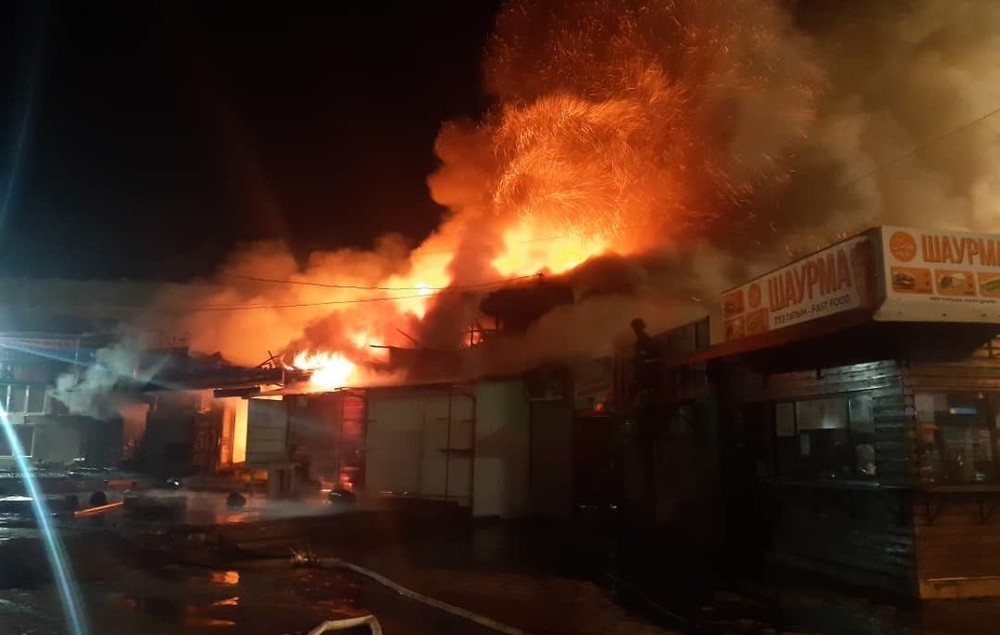 «Ош» базардагы дүкөн өрттөнүп жаткан учурдагы видео
