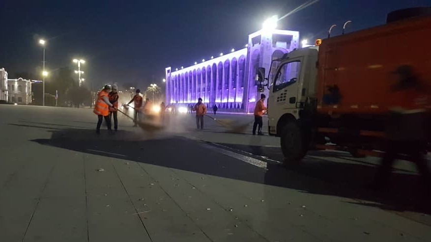 «Ала-Тоо» аянтындагы митингден кийин 1 тоннадай таштанды чогултулду
