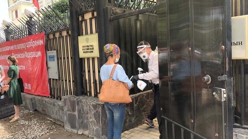 Россиянын Конституциясына өзгөртүүлөрдү киргизүү боюнча Бишкектеги добуш берүү (сүрөт)