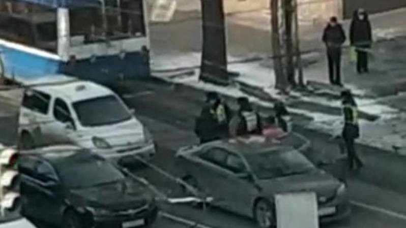 Жолдун ортосунда кайгуулчулар менен чырдашкан айдоочу. Видео