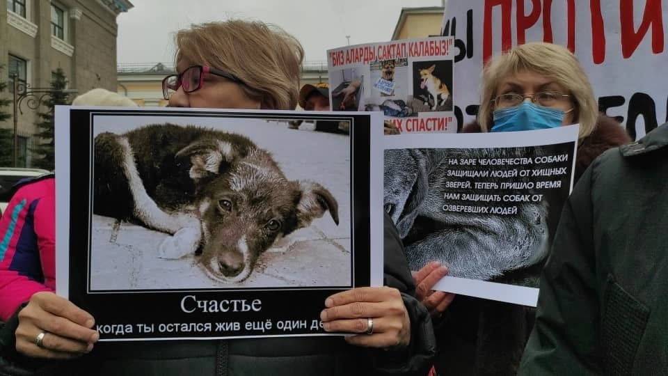 Бишкекте кароосуз калган жаныбарларды коргоого чакыргандар митингге чыкты