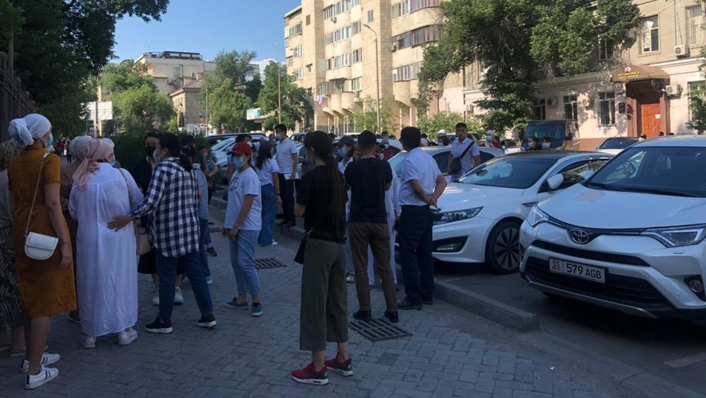 Бишкек шаардык сотунун жанына А.Жээнбеков менен Т.Зулпукаровдун тарапташтары чогулду. Сүрөт