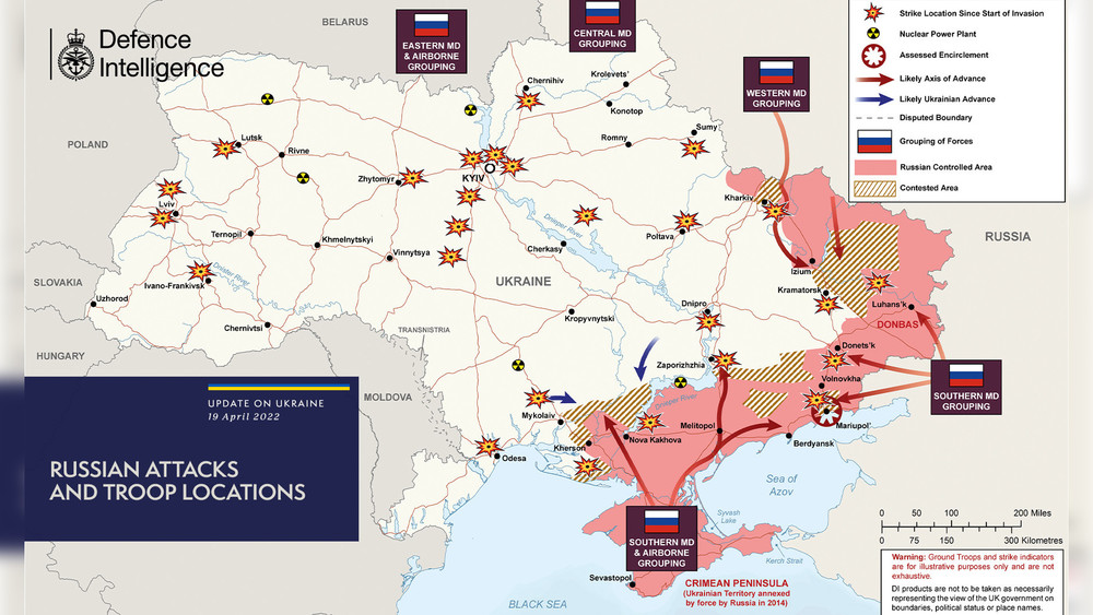 Британиянын Коргоо министрлиги Орусиянын Украинанын чыгышындагы бүгүнкү чабуулунун картасын жарыялады