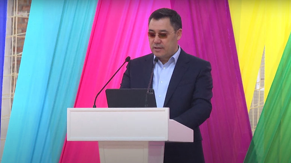 Президент Жапаров Бишкек шаарындагы кыз-келиндер күрөшү боюнча курама үчүн спорт залдын курулушуна капсула салды