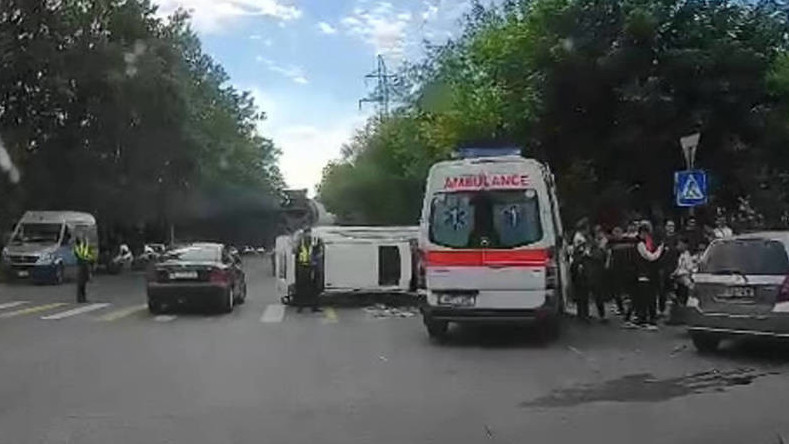 Бишкектин Тыныстанов көчөсүндө «Lexus RX 330» оодарылып кетти