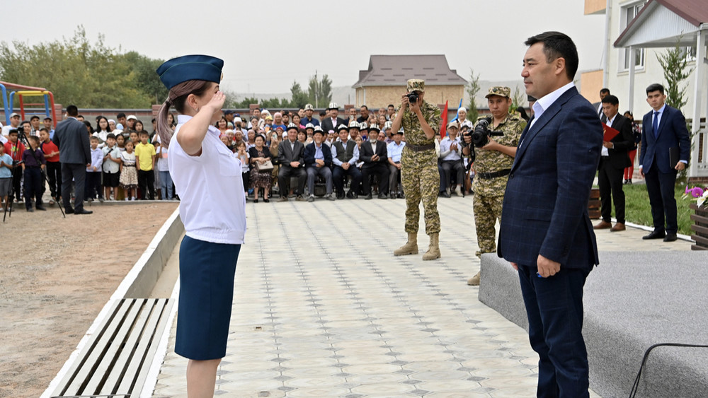 Садыр Жапаров чек ара кызматкерлерине жаңы батирлердин ачкычтарын тапшырды