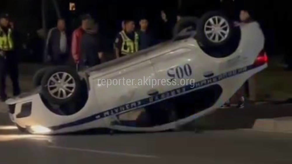 Бишкекте милициянын унаасы оодарылып калган. Кырсыкка чейинки видео