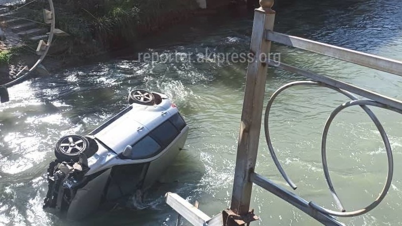 Бишкекте жеңил унаа каналга түшүп кетти. Видео