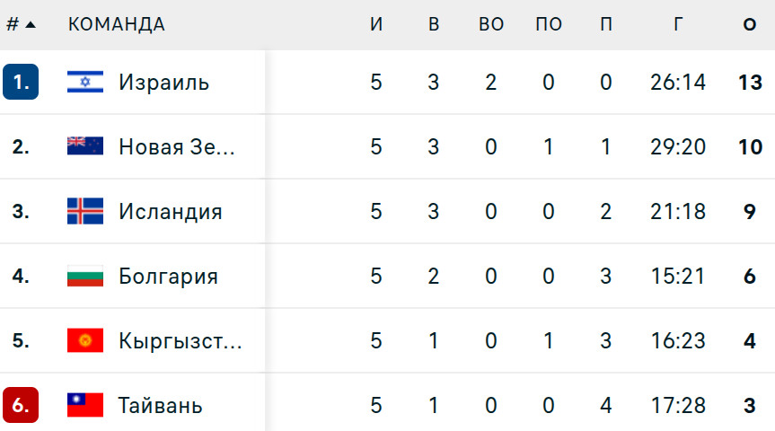 Бул дивизиондо Израилдин курама командасыдүйнө чемпиону болду, экинчи орунду Жаңы Зеландия, үчүнчү орунду Исландия ээледи.