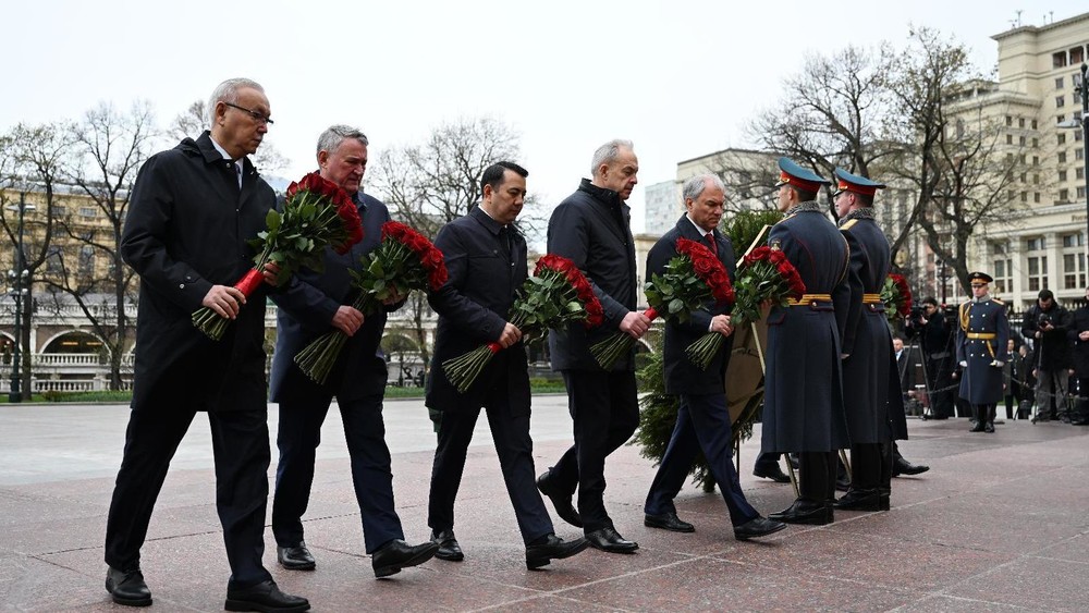 АКИpress - Бүгүн, 20-апрелде Жогорку Кеңештин төрагасы Марлен Маматалиевдин Россияга иш сапары Кремль дубалынын жанындагы Белгисиз жоокердин эстелигине гүл коюу менен башталды.