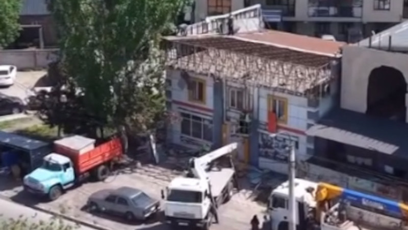АКИpress - Бишкек шаарындагы Садырбаев жана Масалиев көчөлөрүнүн кесилишинде жайгашкан эки кабаттуу объектти демонтаждоо иштери башталды. Бул тууралуу Жер пайдаланууну көзөмөлдөө боюнча башкармалыгы билдирди.
